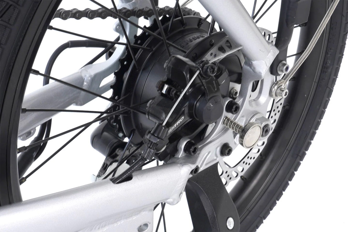 Alba Fold X’in göze çarpan özellikleri arasında ‘step-thru’ kadro tasarımı, Bafang yüksek torklu hub motor, daha kalın e-bike lastikleri, tektro disk frenler ve daha birçok yenilikçi özellik bulunuyor. Alba Fold X, standart sunulan kadroya entegre 375Wh Li-ion bataryası ile daha uzun menzil ve konforlu bir sürüş sağlar. Yeni Alba Fold X’de gri renge ek olarak, gümüş renk opsiyonu, mıknatıslı katlama özelliği, 5 kata kadar güçlendirilmiş bataryadan beslemeli ön ve arka aydınlatmaları, yenilenmiş batarya kitleme mekanizması, güçlendirilmiş katlama mekanizması ve frenleri ile siz ne istediyseniz, biz onu ürettik. Opsiyonlarıyla Yeni Alba FoldX’i kullanım amacınıza göre kişiselleştirebilirsiniz. Son olarak, artık yeni Alba Fold X sürüşe hazır bir şekilde kutusunda gönderiliyor. Hiçbir montaj yapmadan, kutusundan çıkarıp sürebilirsiniz.